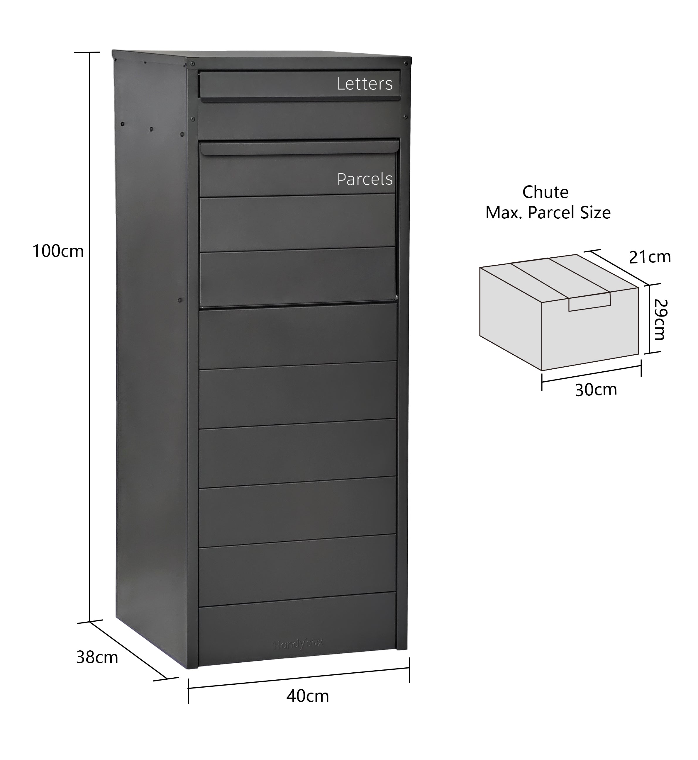 - Monument Colour Parcel Box - Perfect for Large Parcel Deliveries - Weatherproof & UV Resistant - Theft Proof with Key/Pin Code Combo Access - 5 Year Structural Warranty - Scratch Resistant Powder-Coated Finish - Easy to Install - Australian Owned + Designed